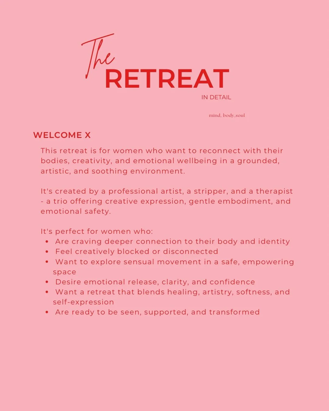Welcome to The Unapologetic Retreat — a vibrant, feminine space where women come together to reconnect with themselves, step into their power, and build genuine connections with others who are on the same journey.