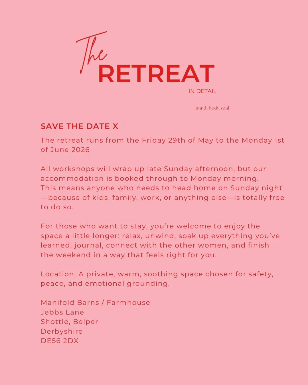 The retreat runs from the Friday 29th of May to the Monday 1st of June 2026